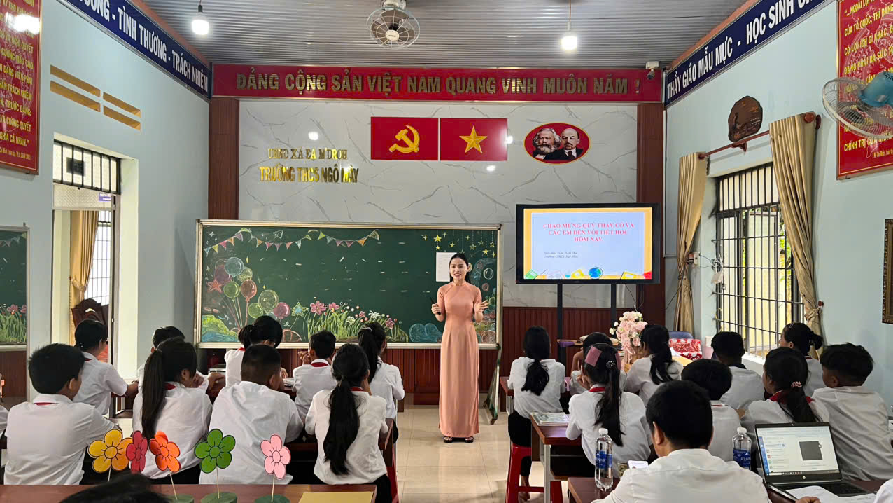 Thực hiện kế hoạch nhiệm vụ năm học 2025–2026 và phong trào thi đua dạy tốt học tốt chào mừng kỉ niệm 43 năm ngày nhà giáo Việt Nam 20-11-2025 và kế hoạch thực hiện chuyên đề năm học 2025-2026. Sáng ngày 10/11/2025, Tổ Toán – KHTN – Công nghệ – Lịch sử & Địa lí – GDĐP của Trường THCS Ngô Mây đã tổ chức thành công chuyên đề. Về dự chuyên đề có thầy giáo Đinh Tiến Dũng hiệu trưởng nhà trường, thầy Cao Xuân Quế phó hiệu trưởng nhà trường có mặt đông đủ thành viên trong tổ và các giáo viên về dự. Chuyên đề được tổ chức nhằm:Tăng cường ứng dụng công nghệ số và AI vào hoạt động dạy học, góp phần đổi mới phương pháp giảng dạy theo hướng phát triển phẩm chất – năng lực học sinh. Hỗ trợ giáo viên xây dựng bài giảng sinh động, trực quan, dễ thống kê kết quả học tập thông qua các phần mềm tương tác. Tạo môi trường học tập tích cực, phát triển tư duy toán học, khả năng hợp tác và giao tiếp cho học sinh khối 6.